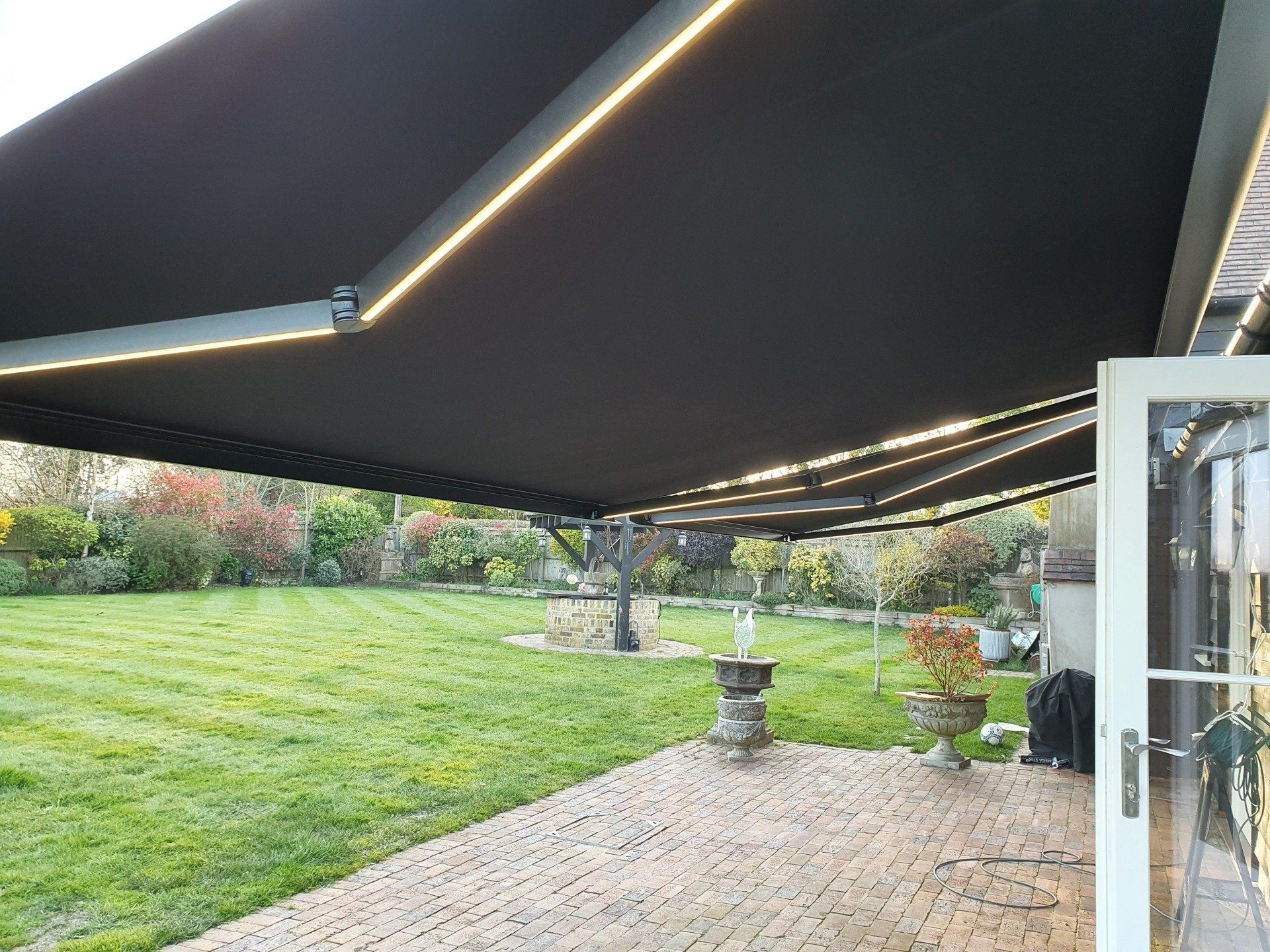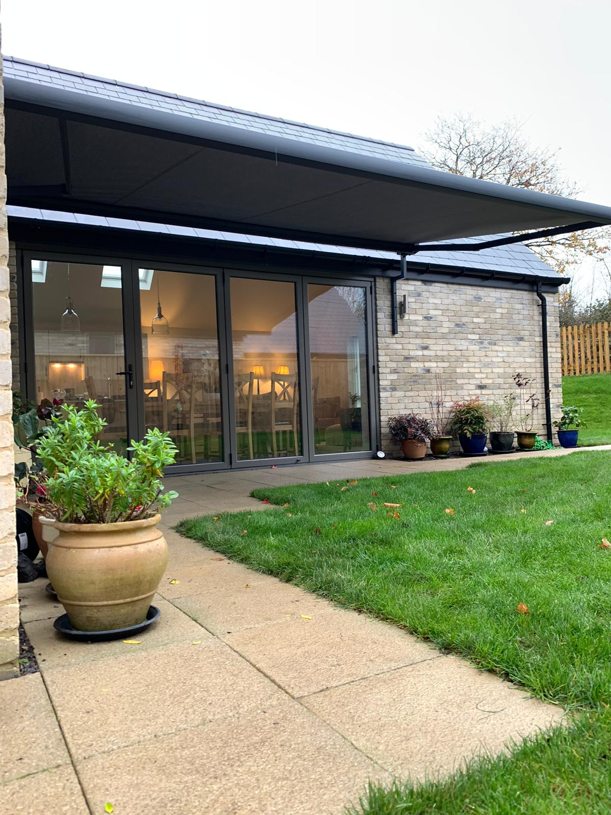 Complete with sliding glass doors, these luxury pergolas can be the perfect addition to your home, providing you with an extra living area and a sheltered spot to enjoy a glass of wine whatever the British weather brings. We can install one of our modular steel frame systems to create a stunning look, with an in-built track and hidden fixings and cables for a smooth finish.