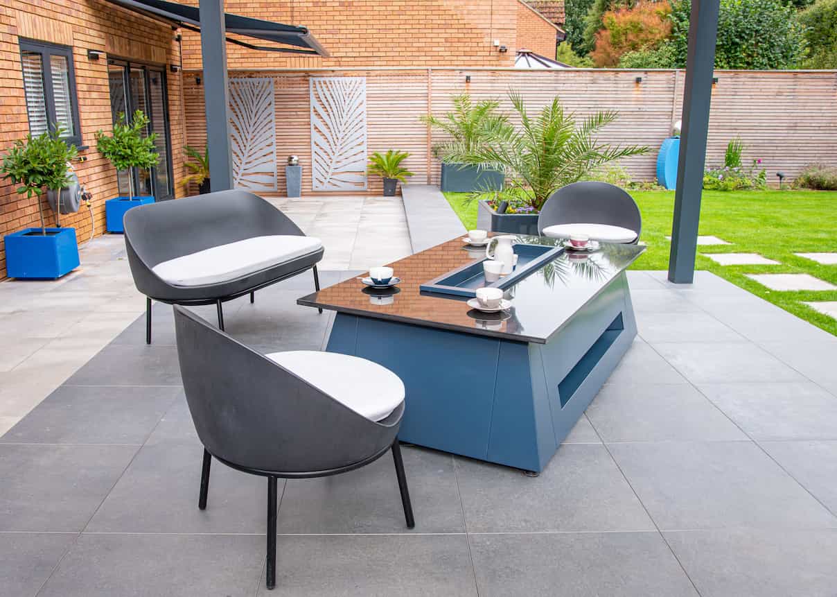Uni-Qa space is a high quality living area that boasts a wide range of bespoke modular features to form a complete outdoor living room that can be positioned into the garden, where desired.